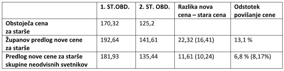 S tem bi v dobršni meri ublažili drastičen dvig cen za starše, ki je v prvotnem predlogu predviden v županovem predlogu.